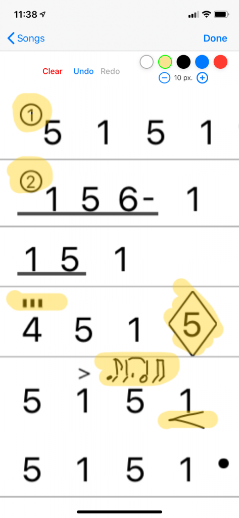 EASILY HANDWRITE RHYTHMIC NOTATION, PERFORMANCE INSTRUCTIONS AND COLORED HIGHLITE MARKUPS